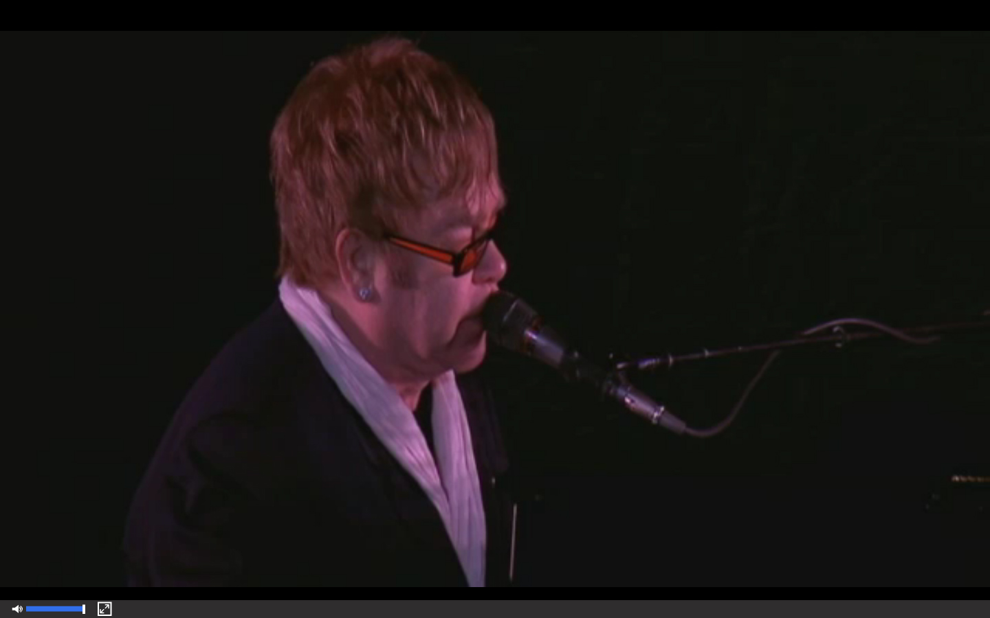Fast forward to 9:45, and the chat room crowd was all abuzz, just like an arena crowd awaiting the start of a concert. The excitement was palpable! Elton came back on stage a little after 10:00 pm, and after a few refreshes, I was in! Elton treated the crowd (both in person and via Livestream) to 6 songs: