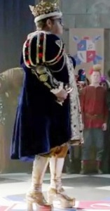 Elton is cast as King, presiding (Simon Cowell-like) over a medieval musical showdown with Melanie Amaro (X Factor winner). The moral of this story: It’s not always great to be King.